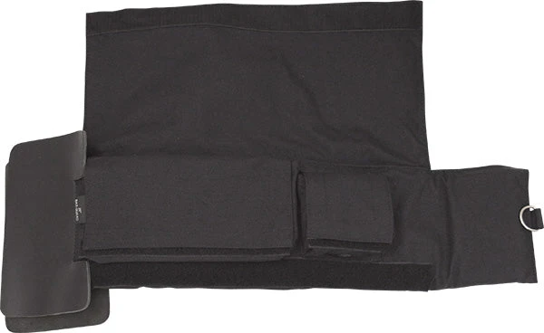 Cover flap with hook and loop closure protects the two exterior pockets for tools and spare parts, and over-size leather guards help keep the dogs in. Wedge pocket on tip is easy to grab, and the 1.75″ foam shoulder pad ensures a comfortable carry.