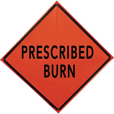 “Prescribed Burn” is a 48″ Fluorescent Orange Non-Reflective sign. Stand sold separately.